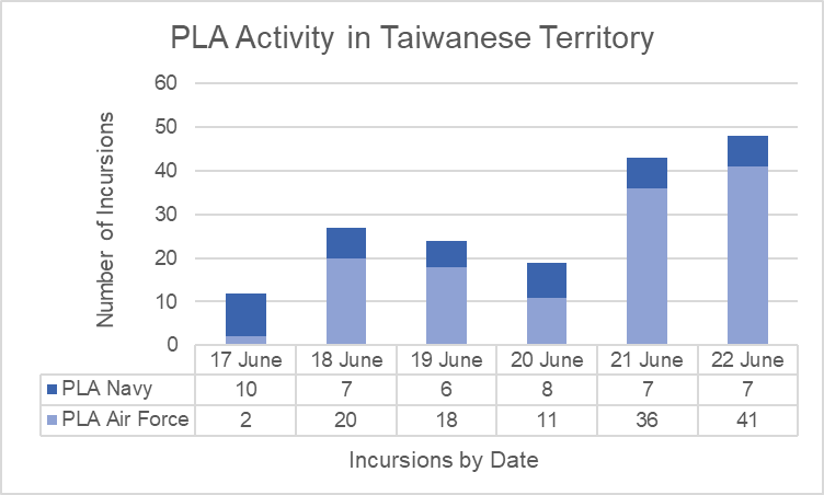 Taiwan experienced 128 aerial and 45 naval incursion by the PLA during this period.